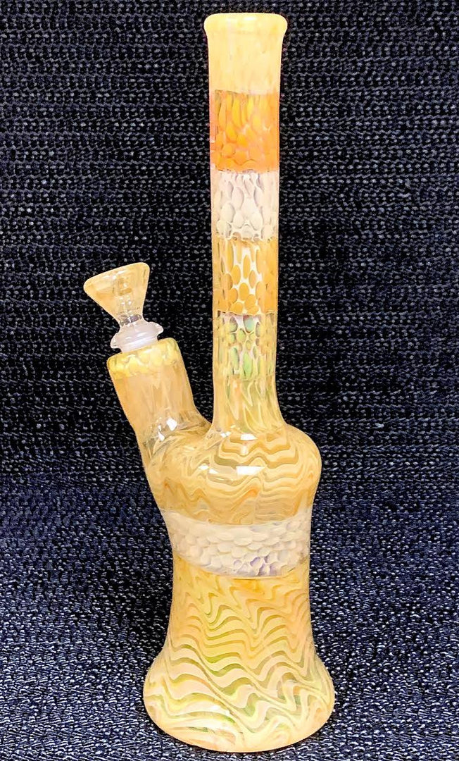 This 1off is 9" overall. Stan and Steve both did 5 sections of heady silver and heavy gold fuming. Features a matching 10mm slide. Only collar tube they've done. Changes color. SFG!