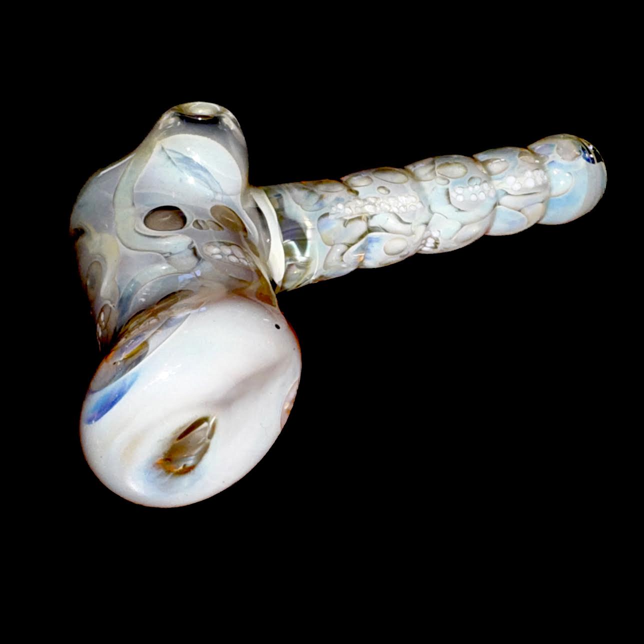 This 1off is 5" overall. BBad drew his fumed skulls with homemade silver white teeth throughout. Changes color when used. SFG