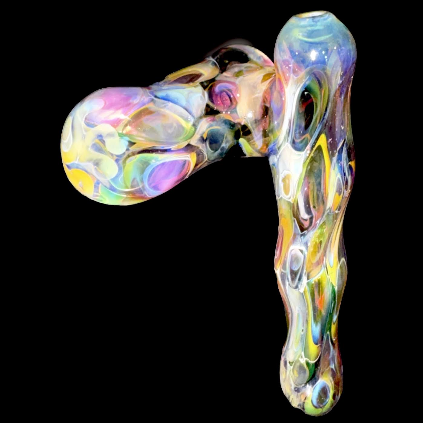 This 1off is 5.5” overall. Brad did his psychedelic silver and gold fuming with color throughout. Changes color when used. Signed. SFG!
