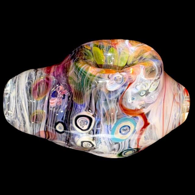 This 1off is around 4" overall. Cam did silver and gold fume with OG millie throughout. Changes color when used and has UV. Signed. SFG!