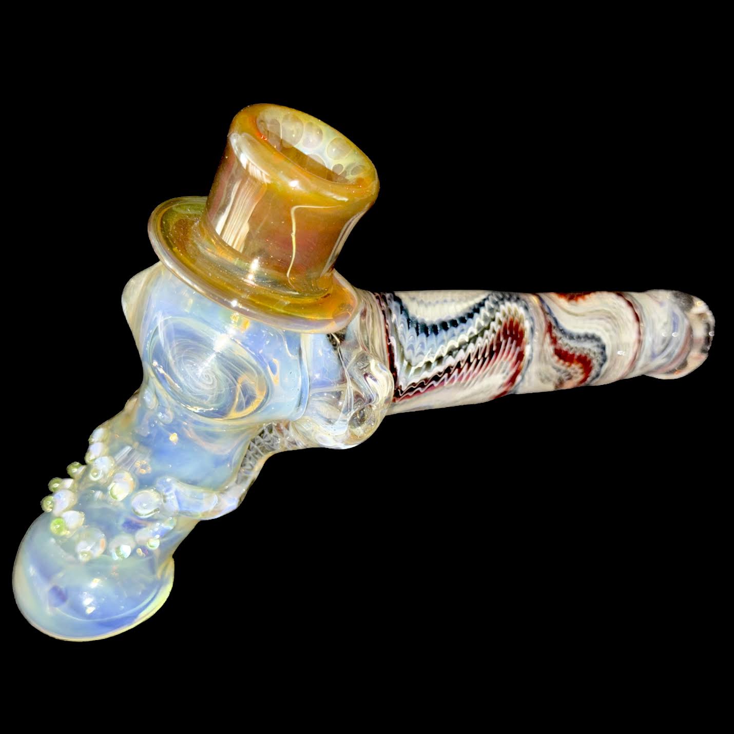 This 1off is 5.5" overall. Cam did his heady Top Hat with fume galore. It changes color when used with some UV. Signed and dated. SFG!