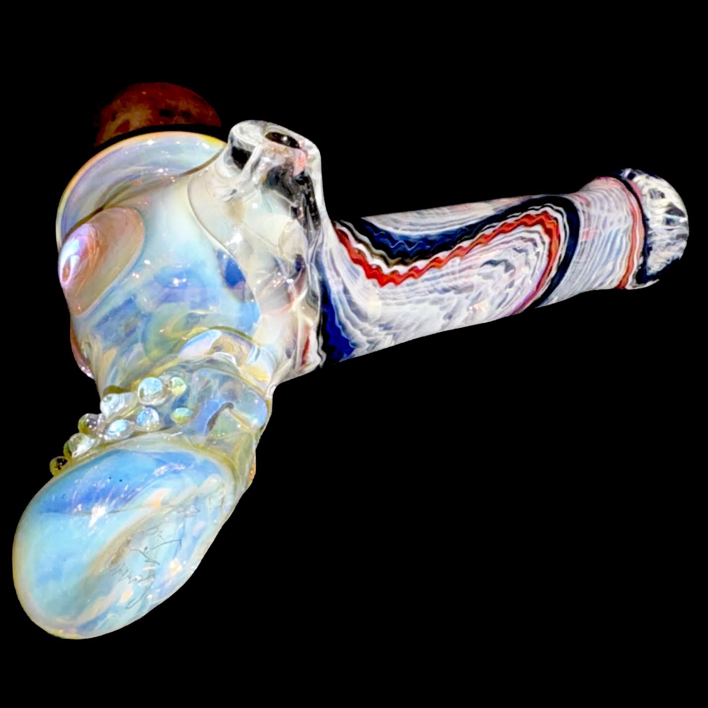 This 1off is 5.5" overall. Cam did his heady Top Hat with fume galore. It changes color when used with some UV. Signed and dated. SFG!