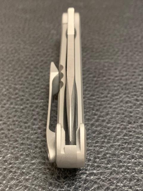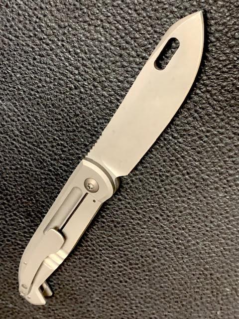 This Jelly has a 3.25" stonewashed CPM154 blade that is 7.25" overall. The titanium frame lock has a stonewash finish with a pinky flip hole and a front flipper. It fires on bearings, has a titanium 3D pocket clip and back spacer. Excellent condition.
