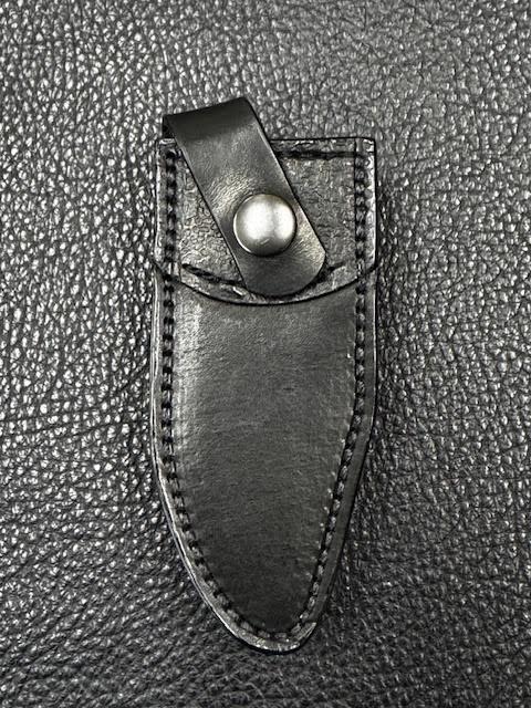 This 1off has a 3.5” hand rub S90V blade that is 8.5” overall. This Traverse has polished maroon Micarta scales with white liners ands a textured titanium bolster. Comes with a leather sheath. New from Shane