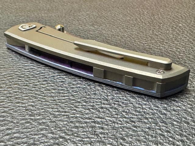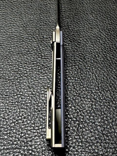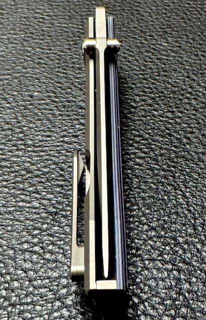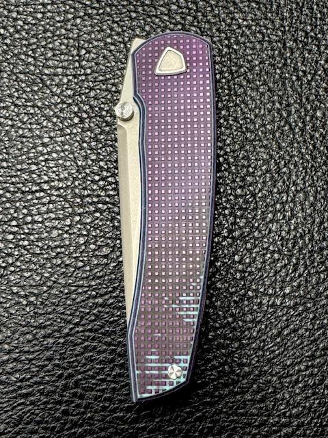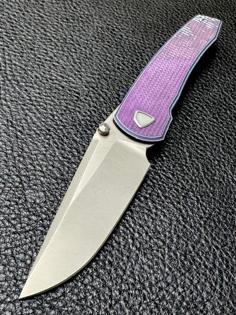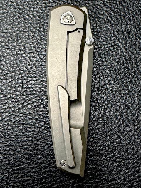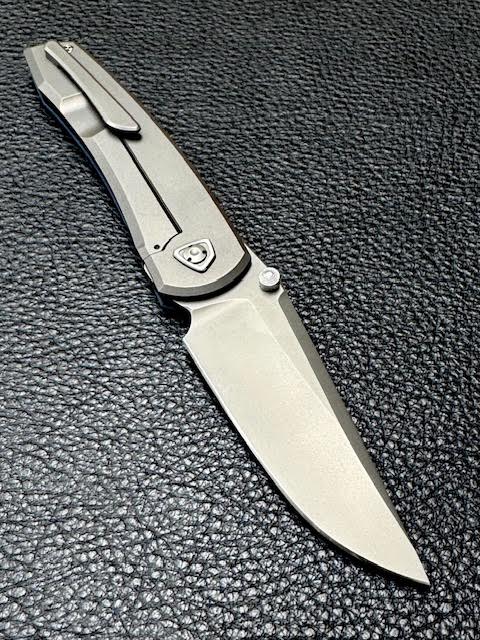 This Waka has a 3.25" Zirblasted RWL34 blade that is 7.5" overall. The frame lock is milled on the inside with a Camo quartz milled scale and titanium hardware. Fires on ceramic bearings and has a milled titanium back spacer. New from maker with COA.