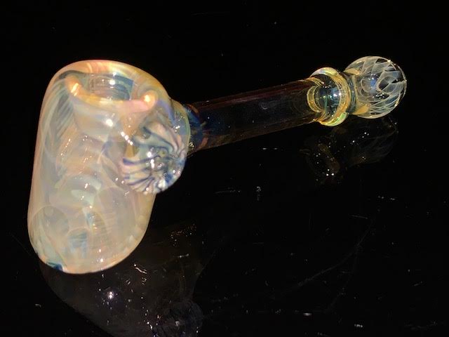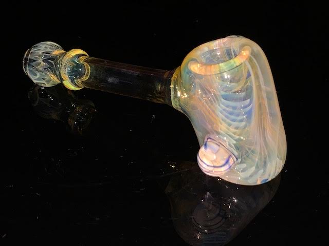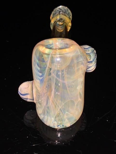 This 1off is 4-5" overall. Steve did his silver and gold fuming on the can and the mouthpiece. Changes color when used and is signed. SFG!