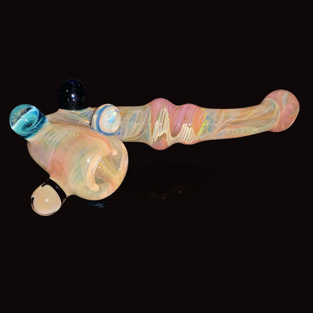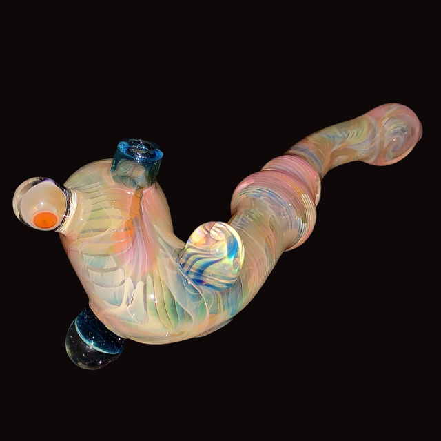 This 1off is 6.5" overall. Steve did his silver and gold fuming throughout with heady marbles attached. Changes color when used. Signed. SFG!