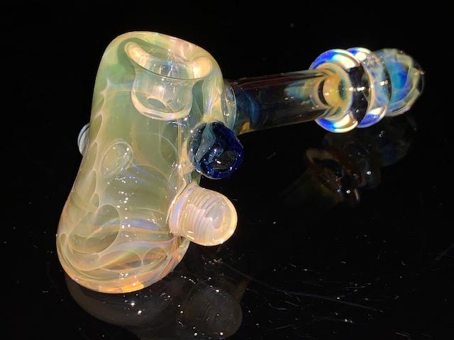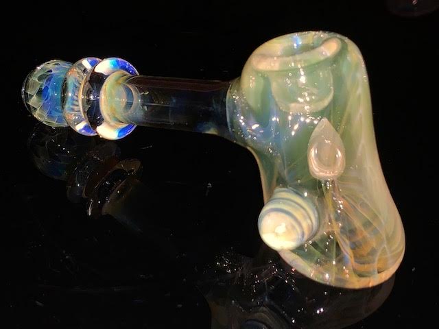 This 1off is 4-5" overall. Steve did his silver and gold fuming on the can and the mouthpiece. Changes color when used and is signed. SFG!