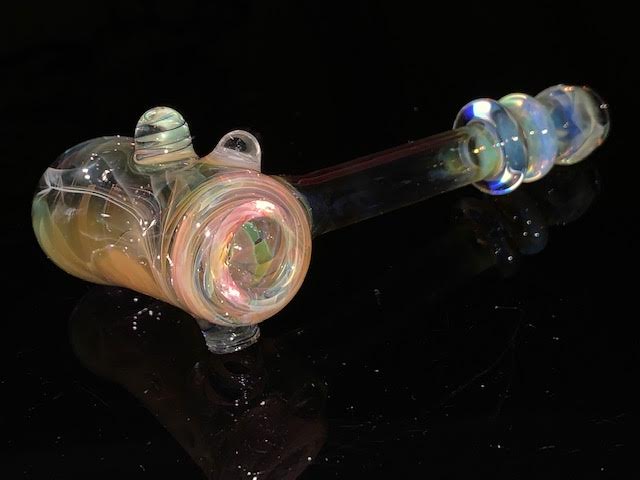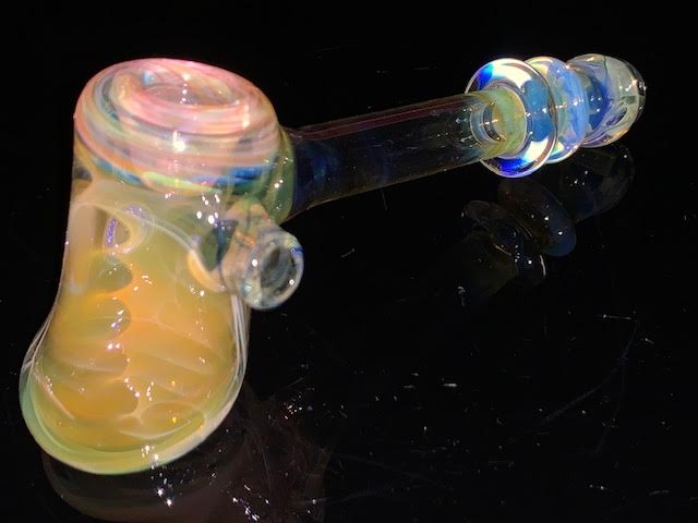This 1off is 4-5" overall. Steve did his silver and gold fuming on the can and the mouthpiece. Changes color when used and is signed. SFG!