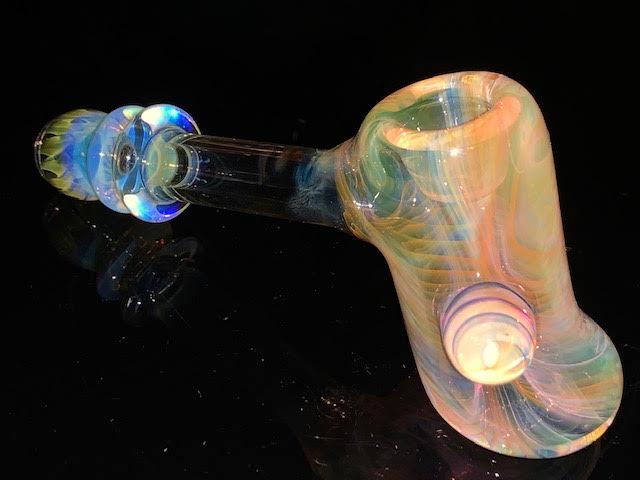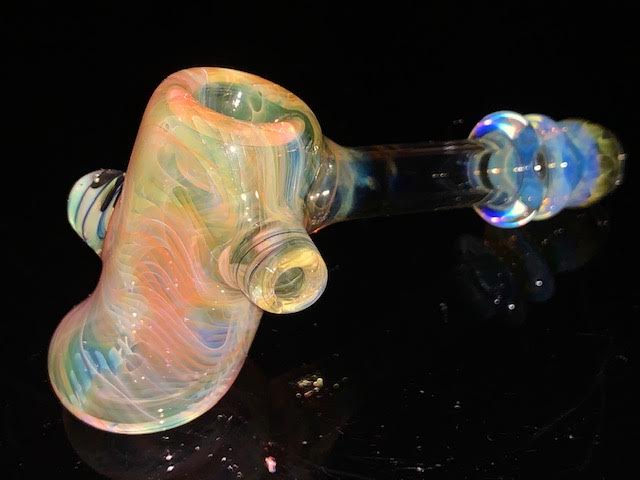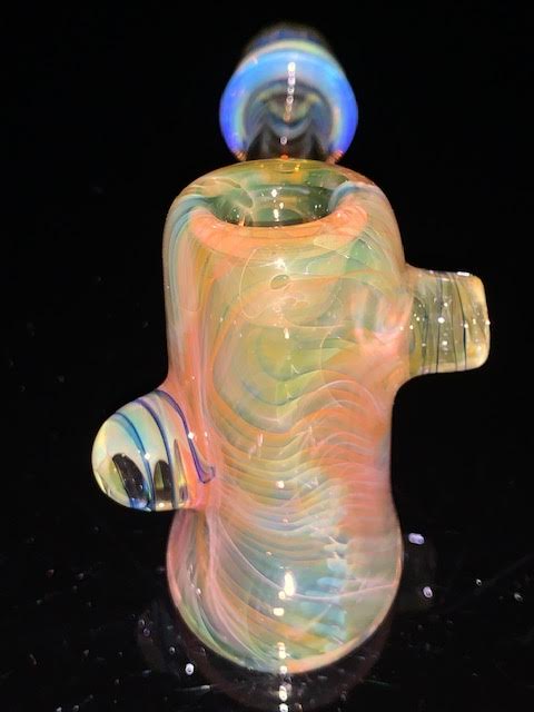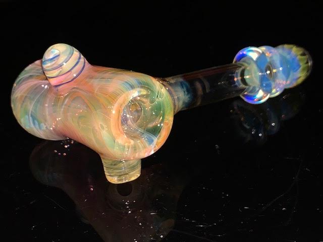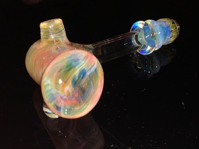 This 1off is 4-5" overall. Steve did his silver and gold fuming on the can and the mouthpiece. Changes color when used and is signed. SFG!