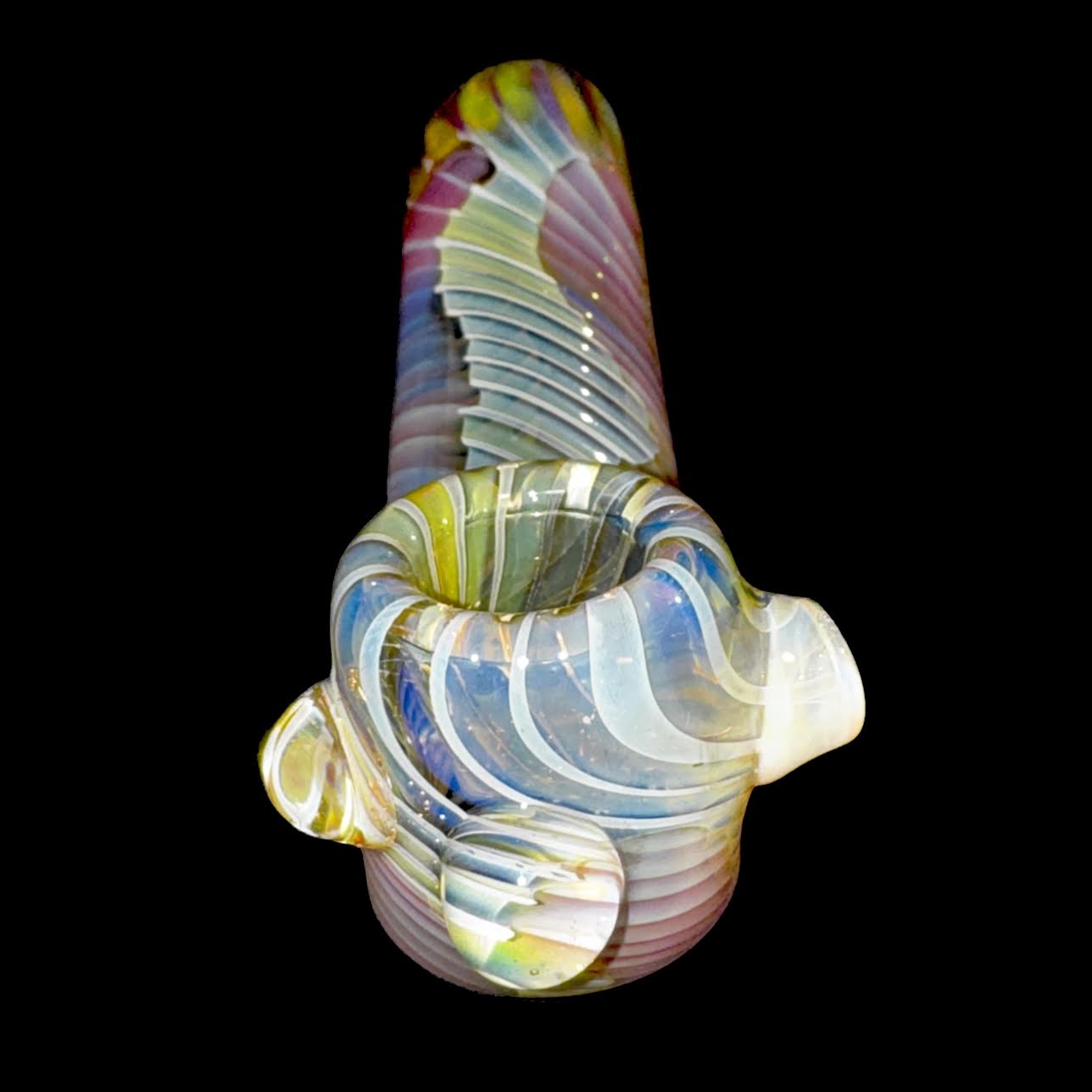 This 1off is between 3.5-4” overall. Steve did his silver and gold tornado fuming throughout. Changes color when used. SFG!